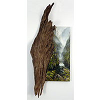 "Karangahake Gorge - Stumped".....Oil on canvas, Driftwood.....NZ$795.....120cm x 52cm